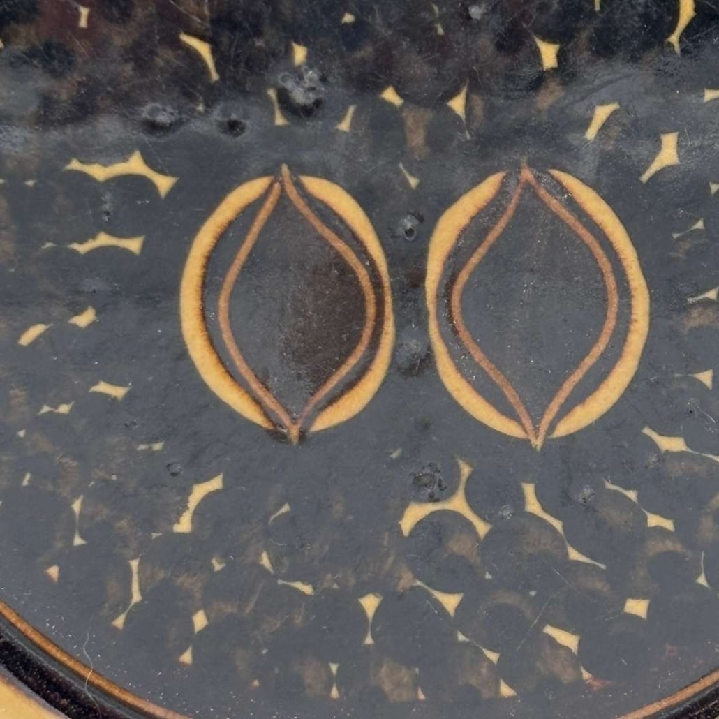 Het Fructus-decor, met een rijk handgeschilderd fruitmotief, is ontworpen door Gunvor Olin-Grönqvist, die bij Arabia furore maakte met haar gedurfde grafische patronen en natuurlijke thema’s. In de schildering zie je de doorsnede van een een granaatappel.