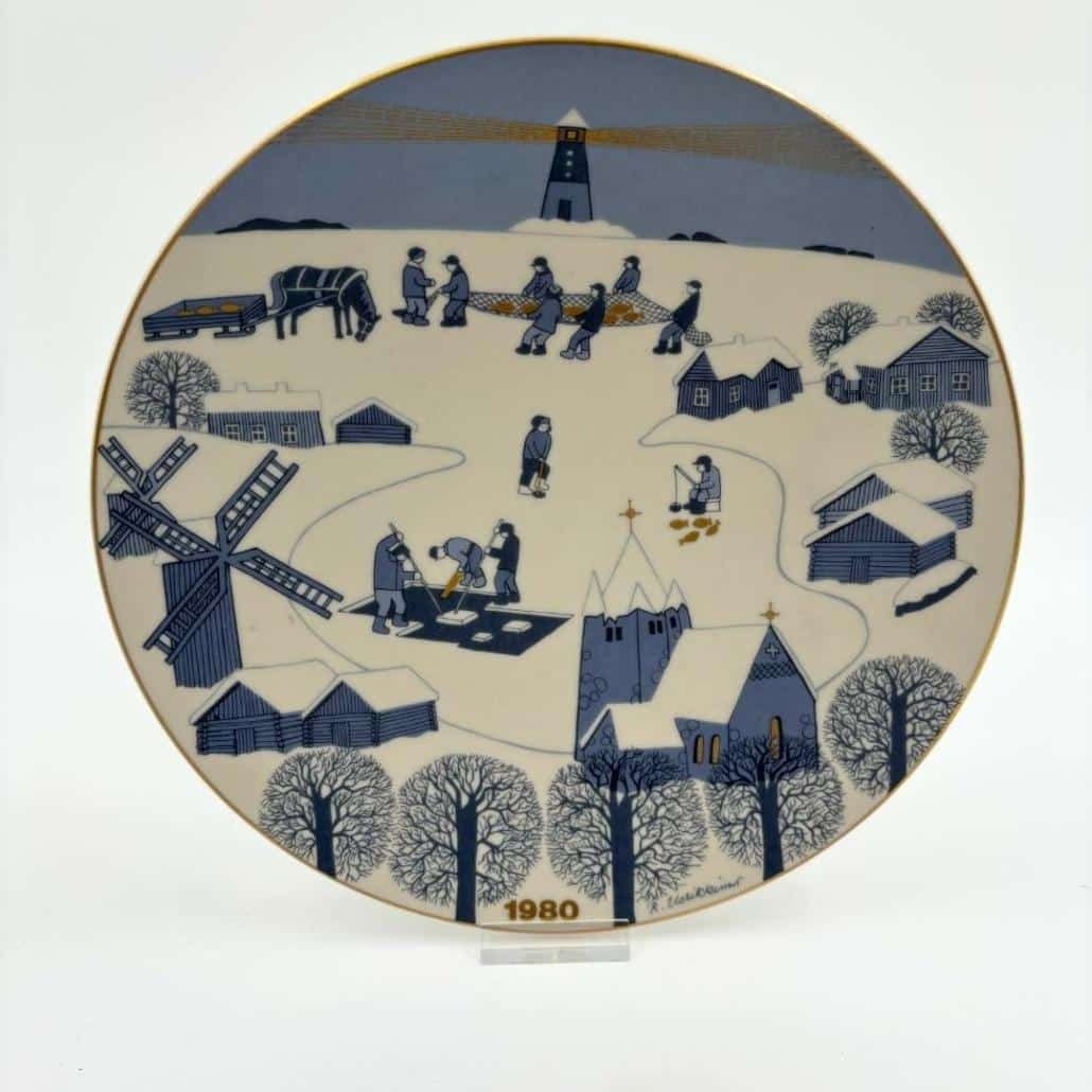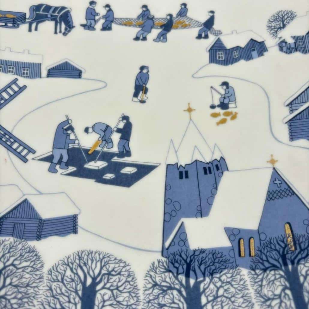 Dit prachtige kerstbord/wandbord van Arabia is een onderdeel van een verzamelserie waarbij jaarlijks een bord werd uitgebracht. Het ontwerp is van designer Raija Uosikkinen. In Finland is de kersttijd een hoogtepunt van het jaar. In de serie zie je de winteractiviteiten in een Fins dorp afgebeeld. Dit wandbord komt uit het jaar 1980.
