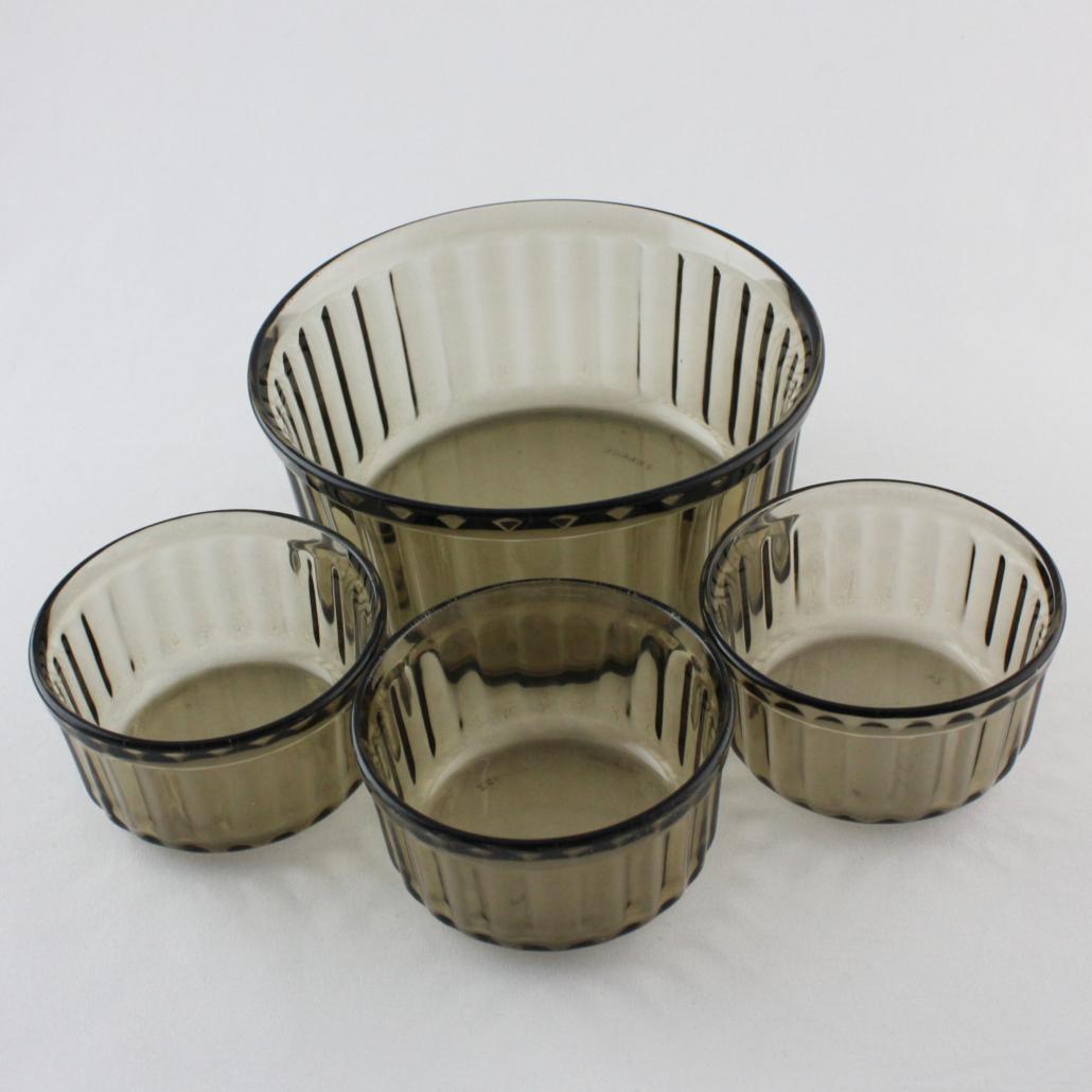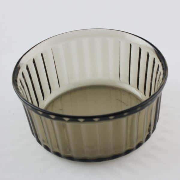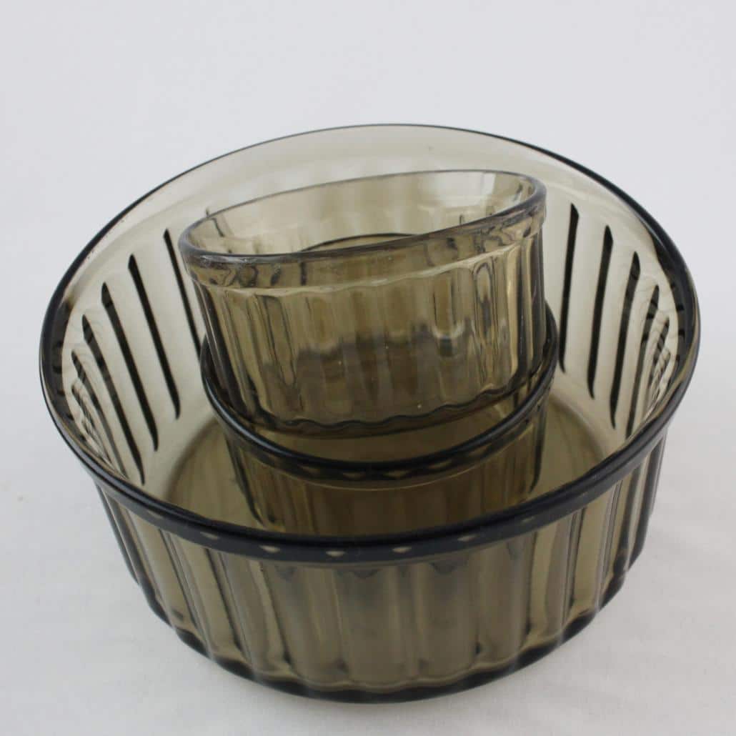 Mooie dessert schaal van Arcopal France. Geperst rookglas uit de jaren ´70.