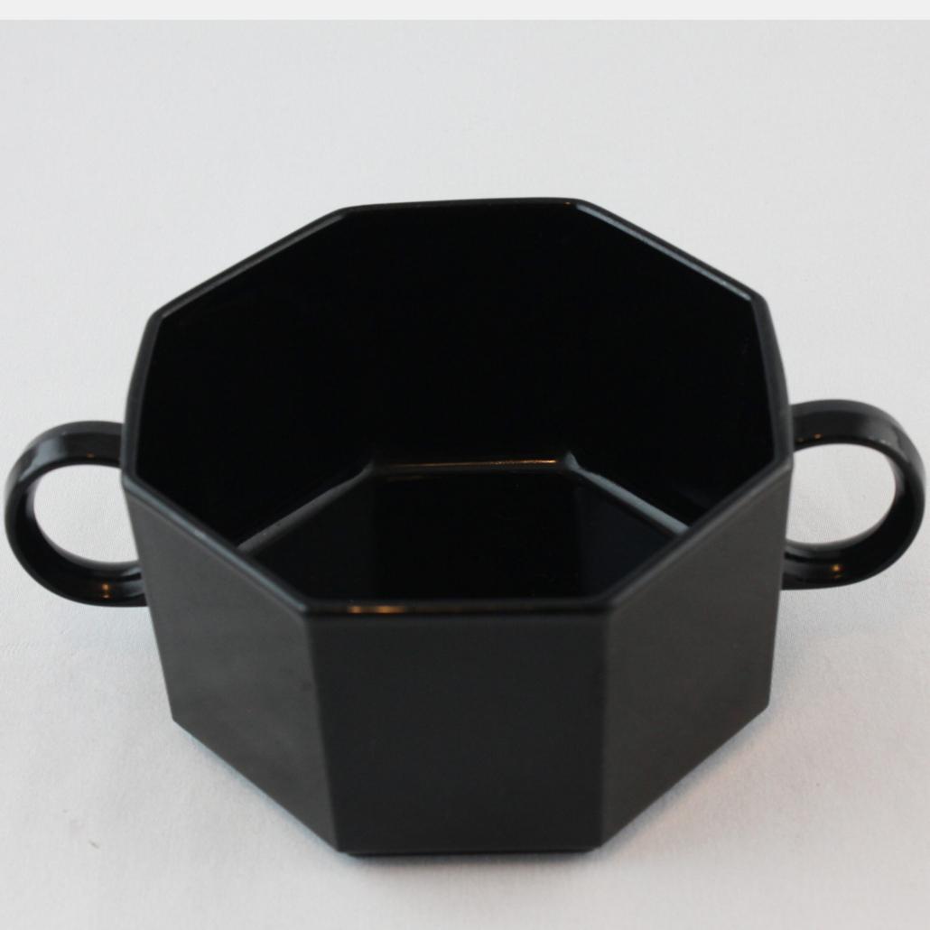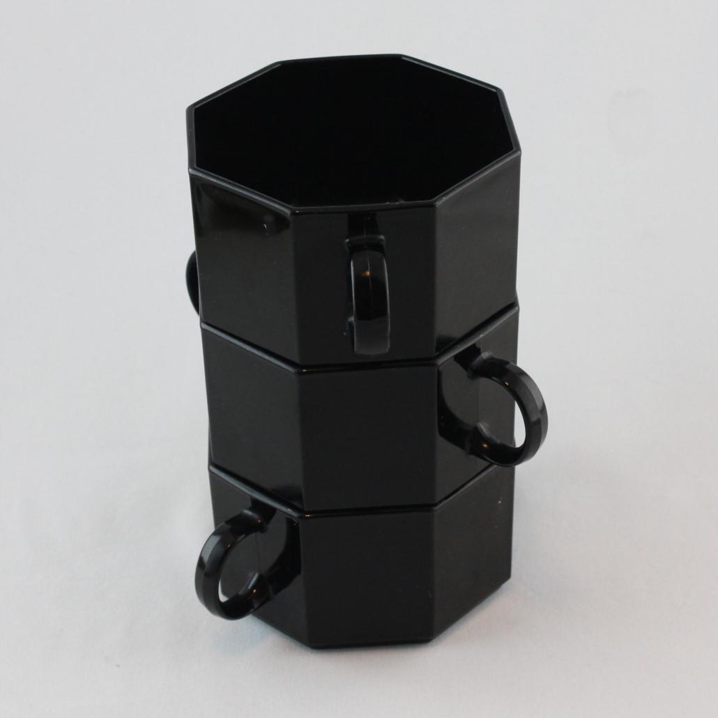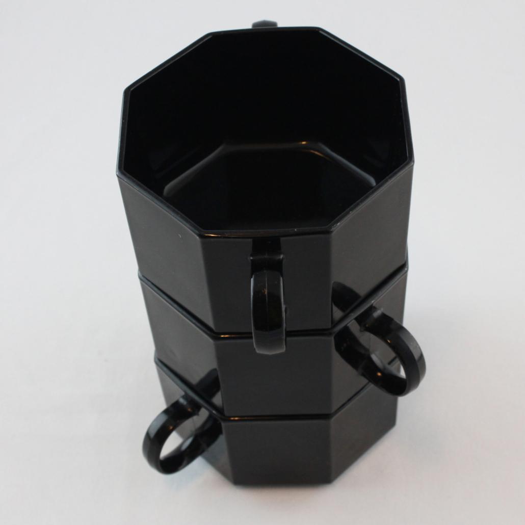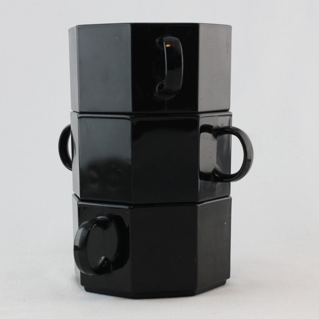 De bekende zwarte zeshoekige kommen van Arcoroc France. Super leuk in een 80’s geïnspireerd interieur.