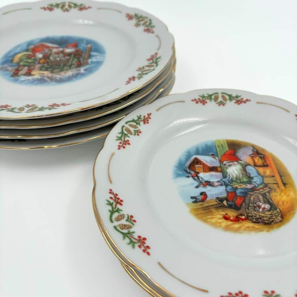 Het ultieme kerstservies uit Scandinavië. Deze bordjes hebben een prachtige tekening van een kerstkabouter die de vogels voert, gemaakt door Lars Carlsson. Een klassiek romantisch kerstservies met een gouden randje en een band van kersttakken, dennenappels en rode besjes. De serie heet ‘Old Fashioned Christmas’ door Christineholm voor Firkloveren.