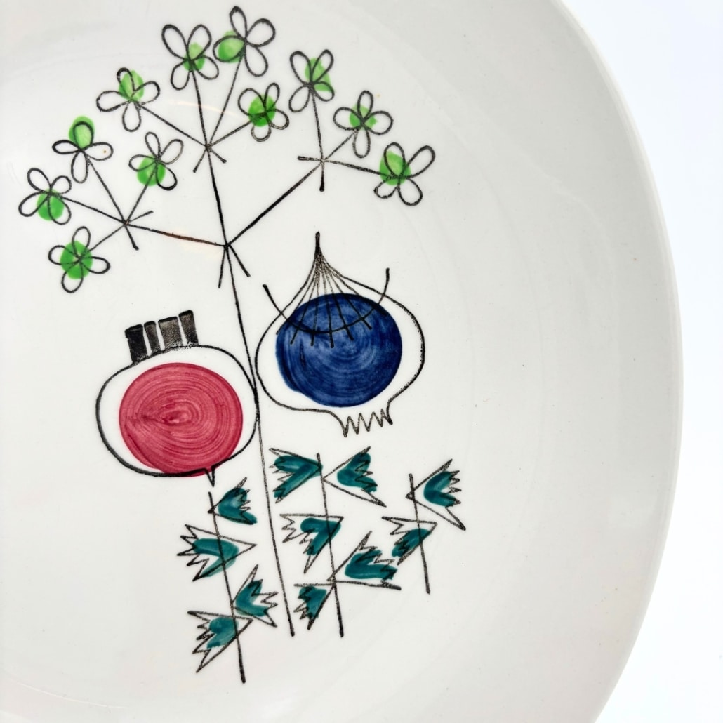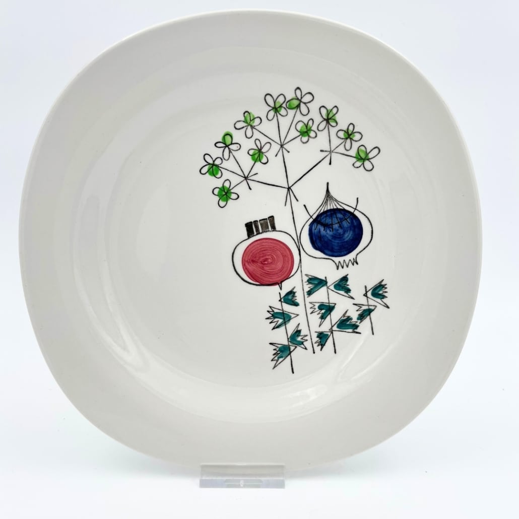 Het geliefde Pomona motief werd in de jaren ’50 ontworpen door Westman – een van Rörstrands bekendste designers. De warme kleuren en organische vormen geven het bord een charmante retro look die tijdloos blijft. Het Pomona servies van Marianne Westman werd in Zweden door Rörstrand geproduceerd van 1956 tot 1971.