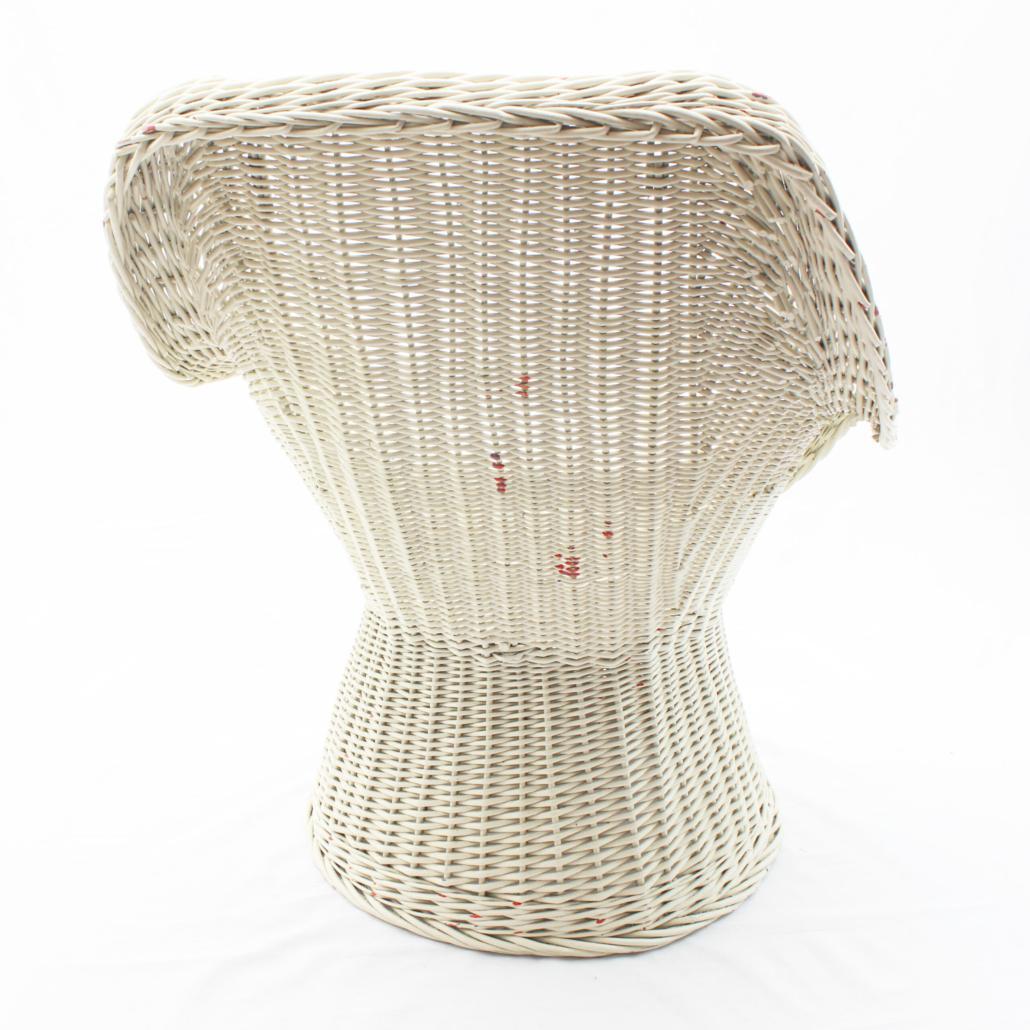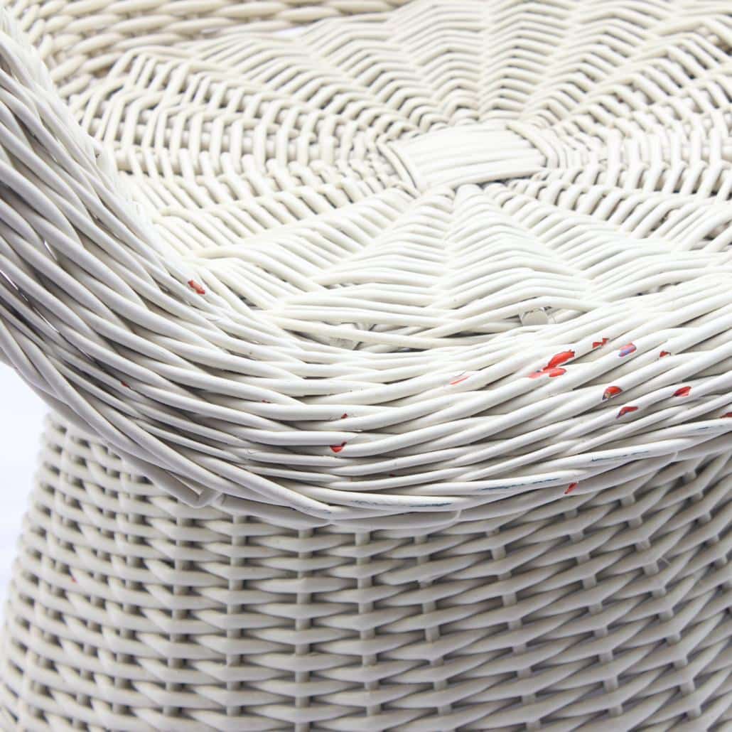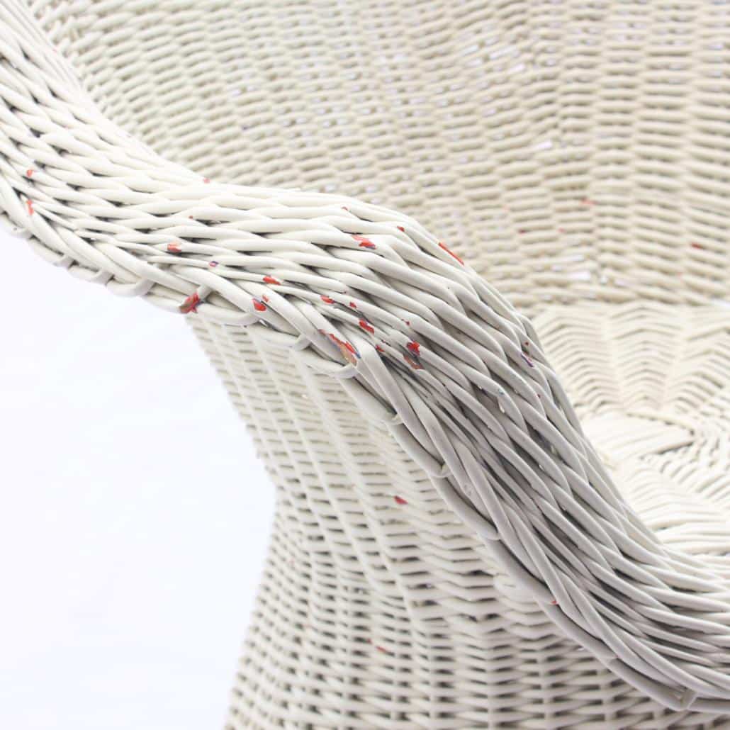 Mooie rotan vintage kuipstoel of strandstoel uit de jaren ´60 of ´70. Past prachtig in een bohemian stijl. In stevige, maar gebruikte staat. Hier en daar zijn er snippers witte verf af waarvoor oranje of blauw te voorschijn komt. Zie foto’s.