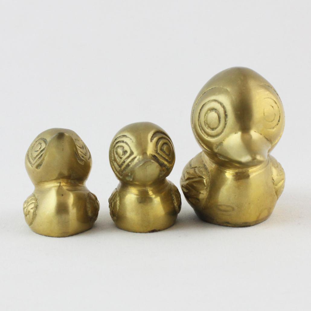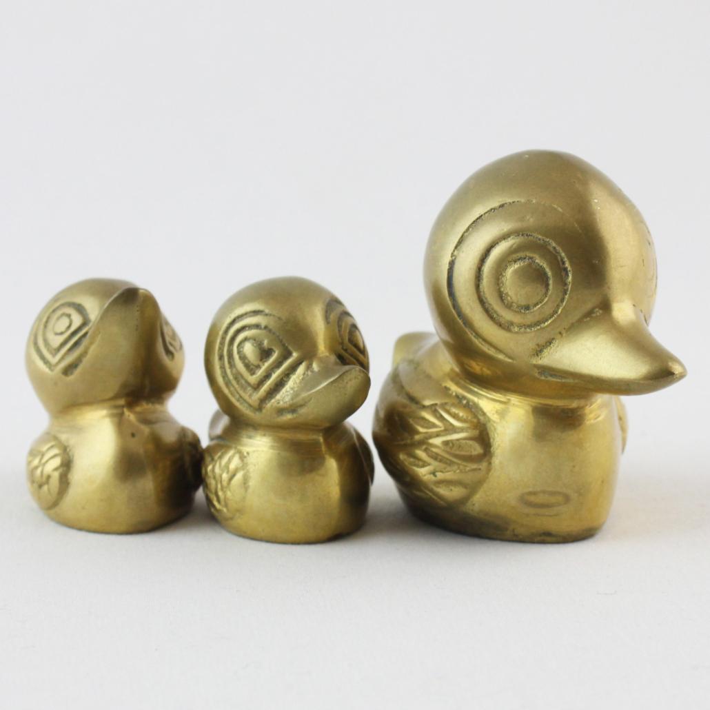 Drie dappere eendjes. Messing beeldjes zijn weer helemaal terug in een bohemian interieur. De afmetingen hieronder geleden voor het grootste eendje.