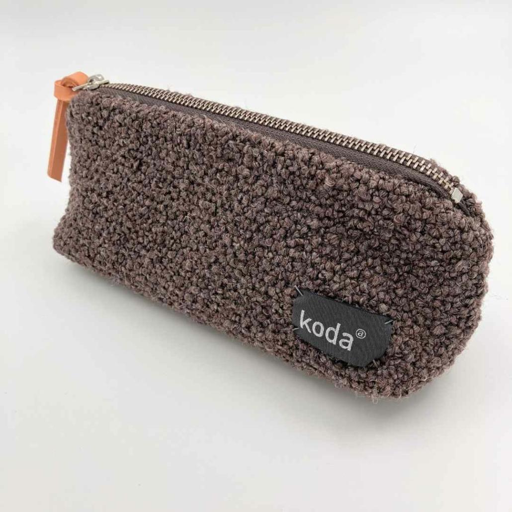 Dit prachtige kleine tasje is gemaakt van reststoffen van meubelstoffenmerk De Ploeg. Koda Amsterdam verzamelt het knipverlies en laat er in Nederlandse ateliers, naar ontwerp van Nederlandse designers, de mooiste circulaire accessoires van maken. De boucle stof heeft een prachtige warm bruine kleur.