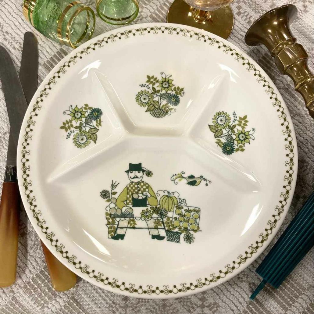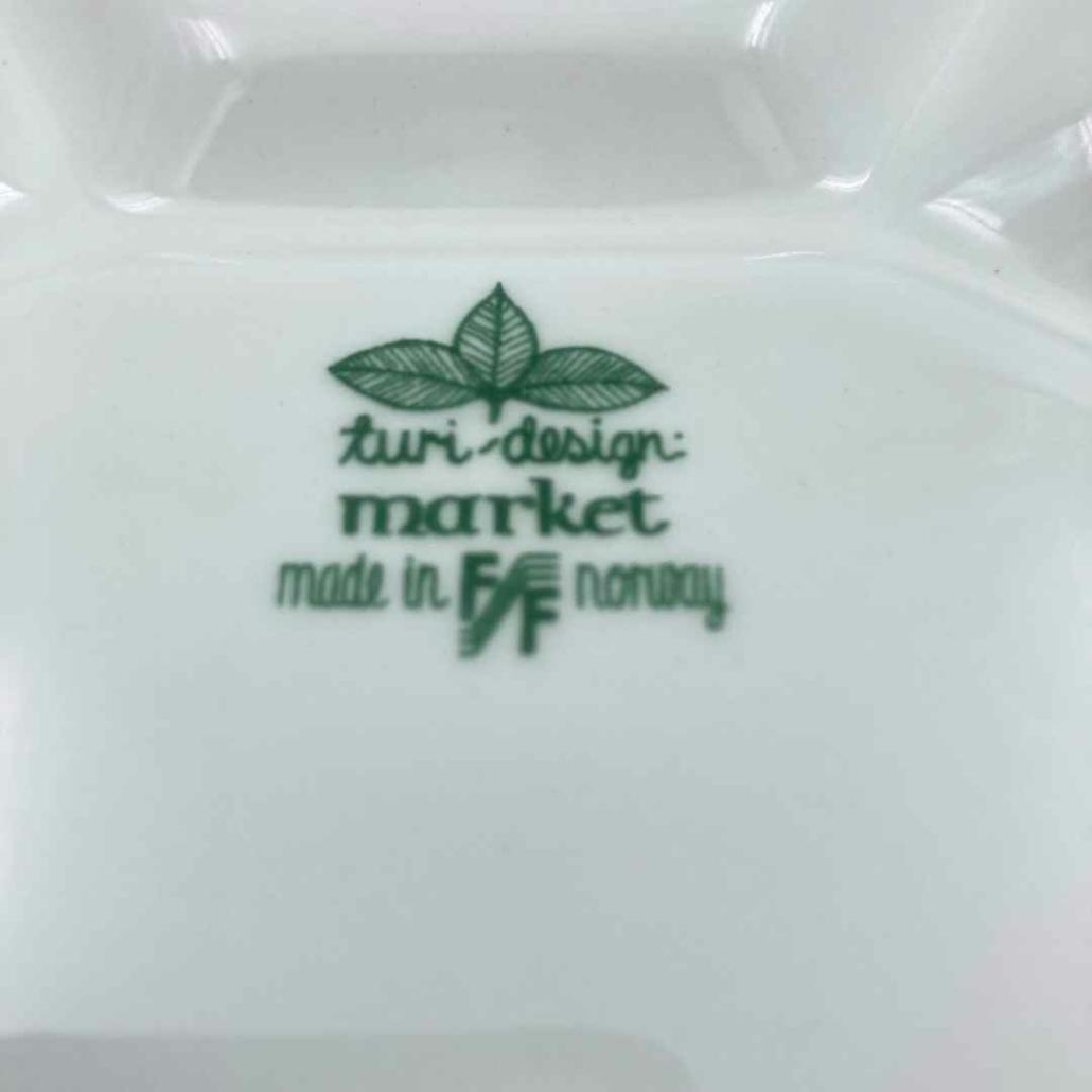 Fonduen of gourmetten wordt pas echt een vrolijke boel met deze Turi Design Market vintage borden uit de jaren ’70. Ze zijn gemaakt voor Figgjo in Noorwegen. Deze porselein fabriek in het hoge noorden is nog steeds actief.