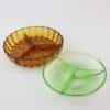 Taartschaal met zes kleine schaaltjes van prachtig roze geperst glas uit de jaren ’50.