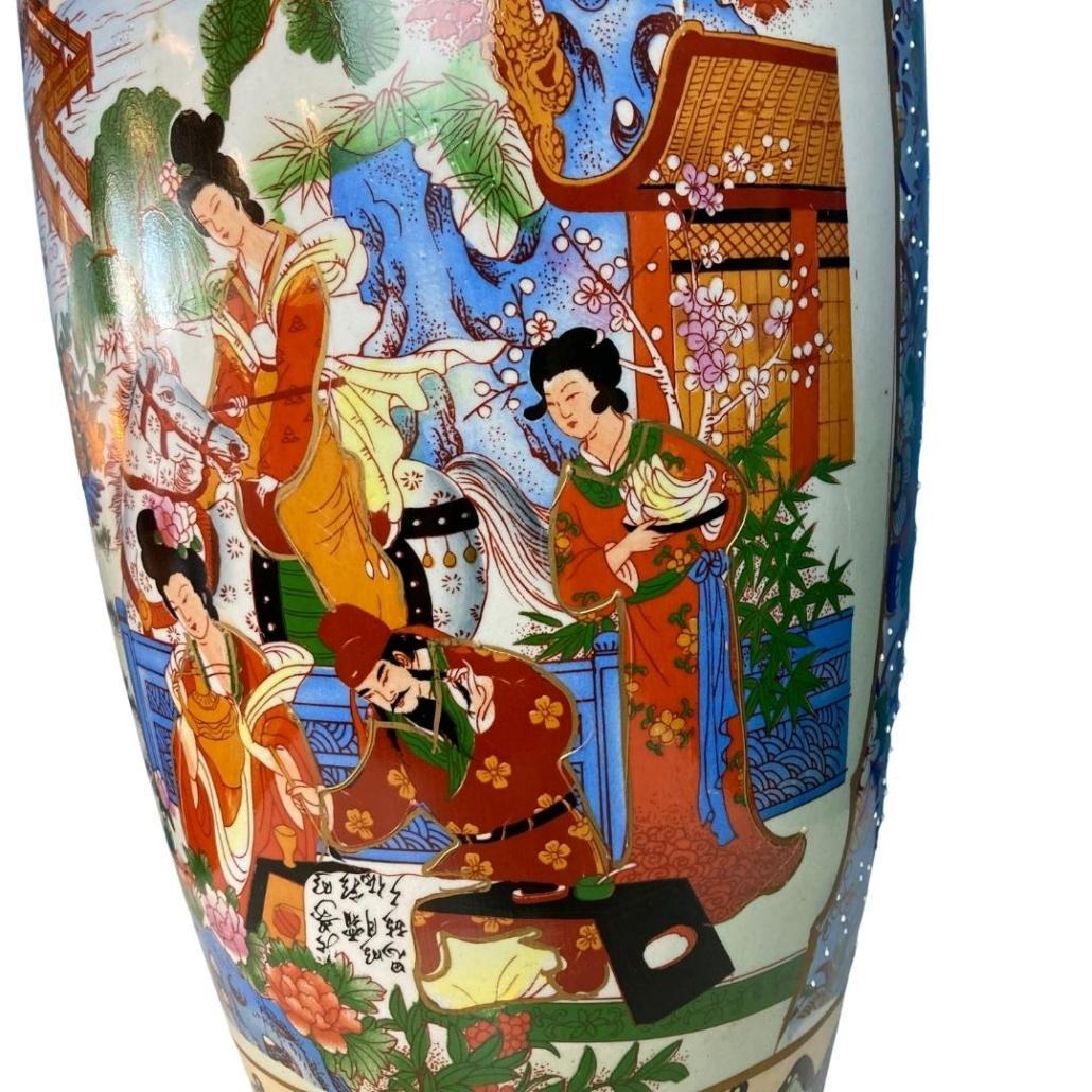 Erg mooie en grote Chinese vaas: 60 cm hoog. Met fijne schildering en bijzonder reliëf op de hals. In perfecte conditie. Handbeschilderd.