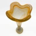 Naar deze handgeblazen glazen vaas blijf je kijken door de slingers van kleur in de prachtige kelk en de bodem. De oranje swirl draait in een melkachtige ondertoon en eindigt in grijs in de bodem van de vaas.