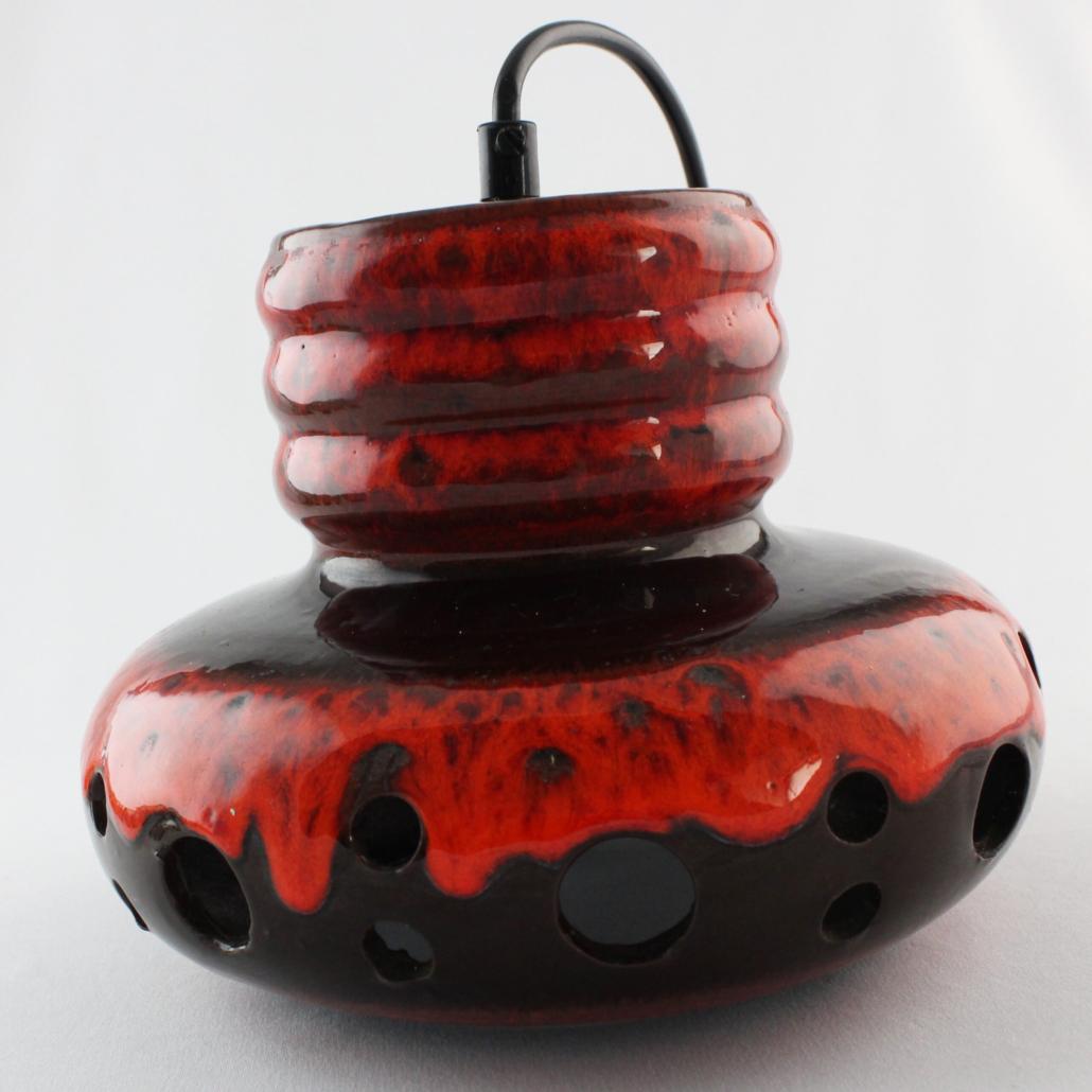 Jaren ´70 hanglamp van de Nederlandse fabrikant Herda. In roodoranje-bruin. Goede vintage conditie en getest. Doorsnede circa 20 cm. E 27 porseleinen fitting.