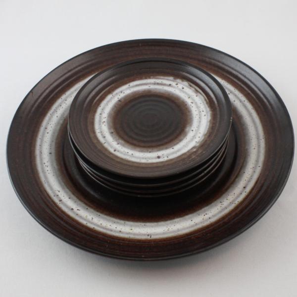 Prachtige jaren ´70 taartschaal met 4 gebaksbordjes. In mooie staat. Bij twee bordjes zijn er piepkleine chipjes van de rand af, bijna niet zichtbaar.