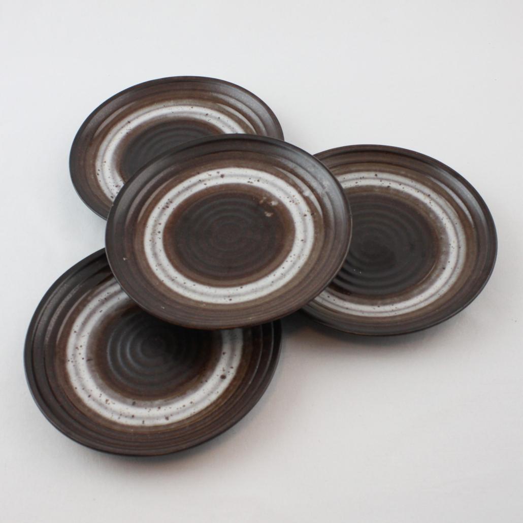 Prachtige jaren ´70 taartschaal met 4 gebaksbordjes. In mooie staat. Bij twee bordjes zijn er piepkleine chipjes van de rand af, bijna niet zichtbaar.