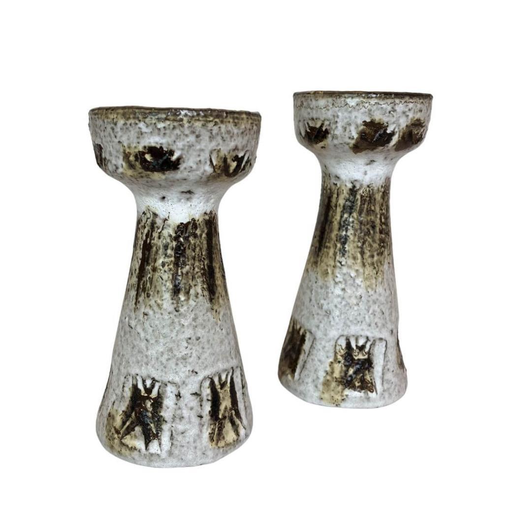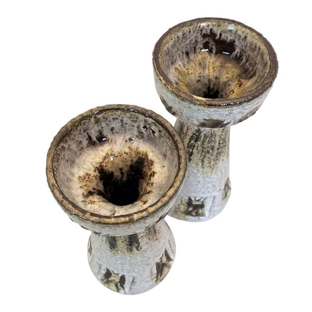 Set van 2 sublieme keramieken kandelaars, in fat lava stijl. Mooi robuust keramiek uit jaren ’70. Seventies meets modern.