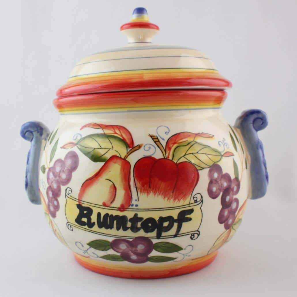 In de Rumtopf maak je een traditioneel Duits en Deens dessert van gemengd fruit en alcohol. Er zijn talloze recepten te vinden. Lekker ouderwets in je vintage pot, of in deze iets modernere variant. Ook mooi als decoratie in een bohemian keuken.