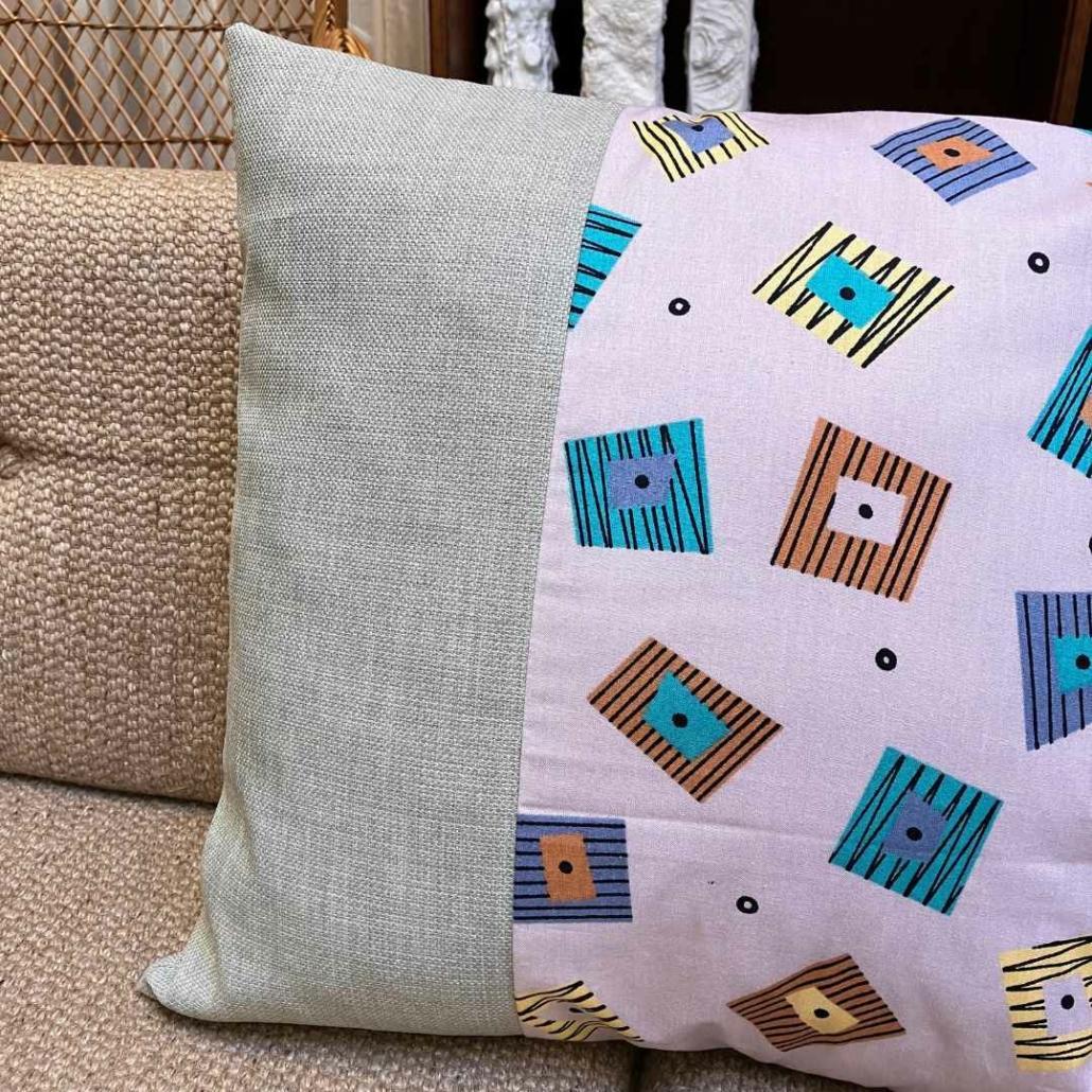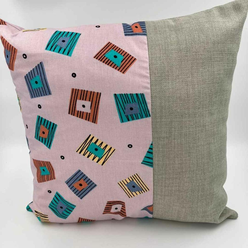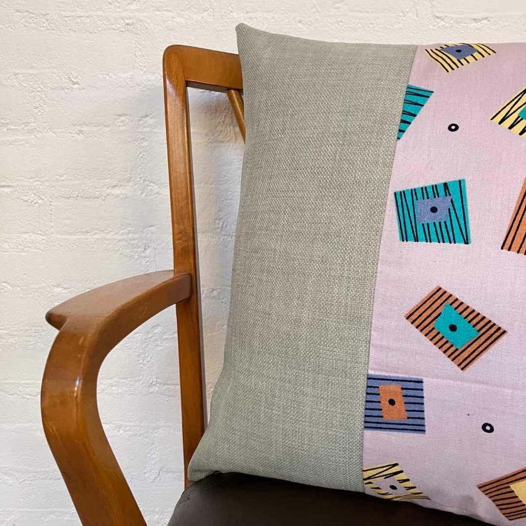 Prachtig kussen met geometrisch patroon ontworpen door Synnove Mork voor IKEA in de jaren ’90. Met een mooie beige band. Dit handgemaakte kussen is gemaakt van vintage -en reststoffen. Het is onderdeel van de collectie Dåtid, een samenwerking tussen Warenhuis Strant en Barabrenda, waarbij we kussens samenstellen en maken met vintage stof, oude Zweedse bloemetjesgordijnen, fleurige tafelkleedjes en designstoffen. Ieder kussen is uniek en duurzaam geproduceerd.