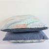 Dit kussen is 100% circulair. De stof vond ik in de Zweedse loppis. Het lijkt zo uit een Zweedse tienerkamer uit de jaren ´90 te komen. De spijkerstof aan de achterkant komt uit mijn moeders lappenmand. Volgens mij heeft ze daar in de jaren ’90 nog een broek van genaaid. De rits komt uit een kringloopkussen. Het naaigaren uit de naaikist van mijn oma.