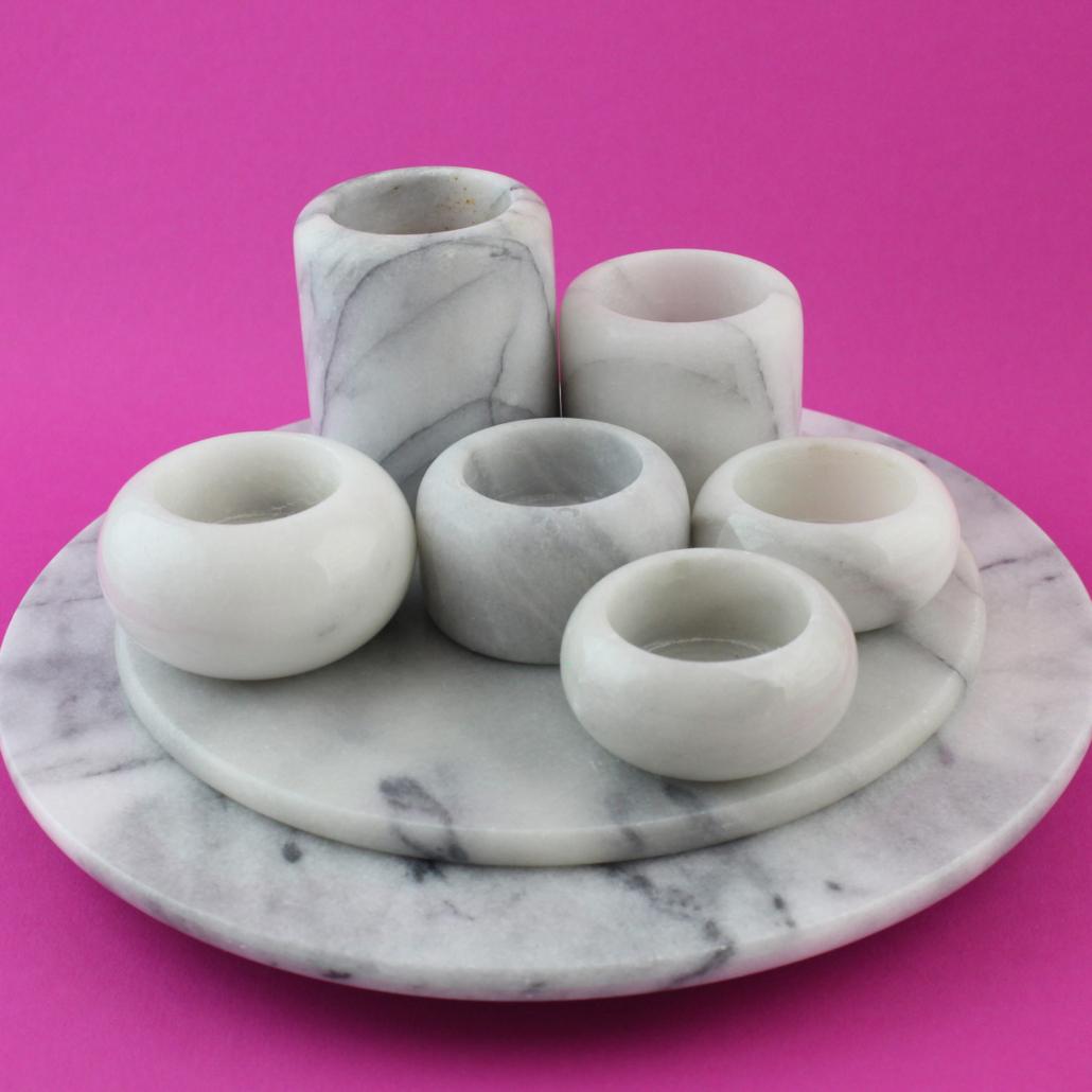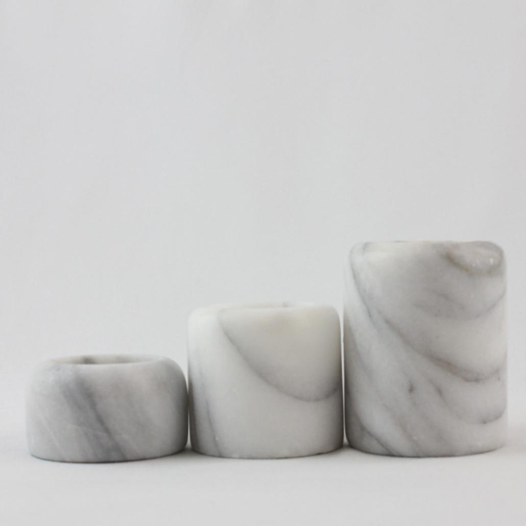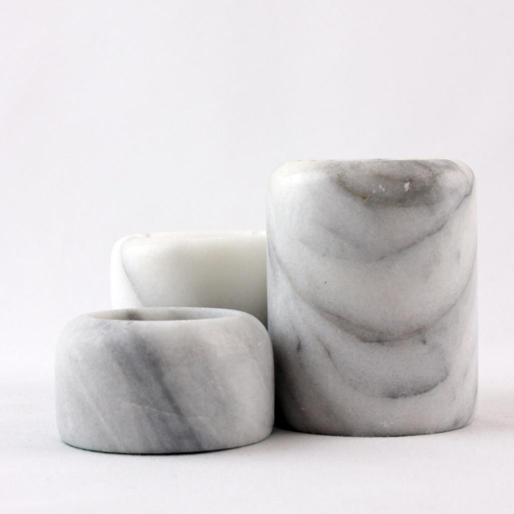 Drie vintage marmeren kandelaars uit de jaren ’80.