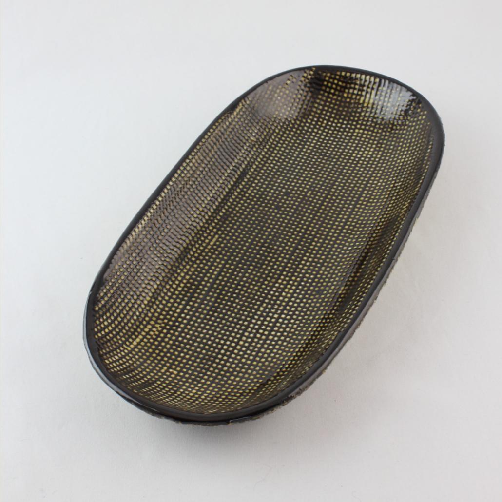 Mooie schaal met subtiel decor, ontworpen in de jaren ’60 door Ingrid Atterberg voor de Zweedse keramiek fabriek Upsala Ekeby. De serie heet Yondel. Nummer 2469.