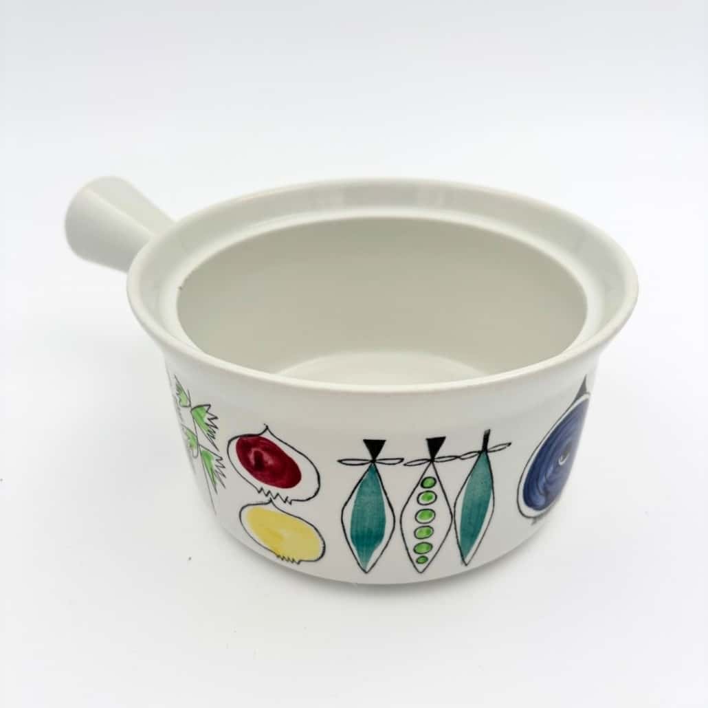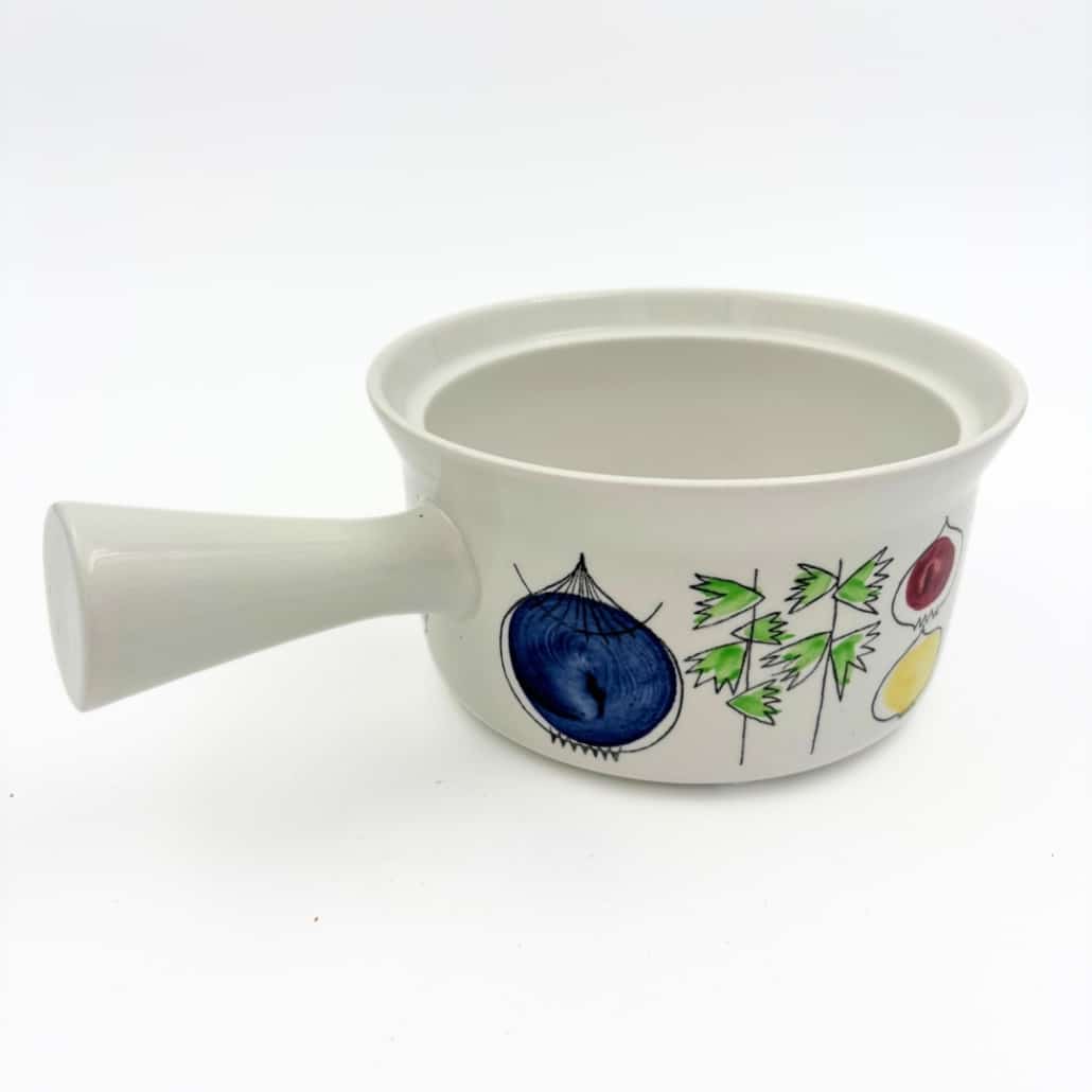 Het Rörstrand Picknick servies is ontworpen door Marianne Westman. Dit pannetje met nummer 61, heeft het kenmerkende speelse motief met prachtige abstracte vormen van de groenten. Een echte Zweedse design klassieker.
