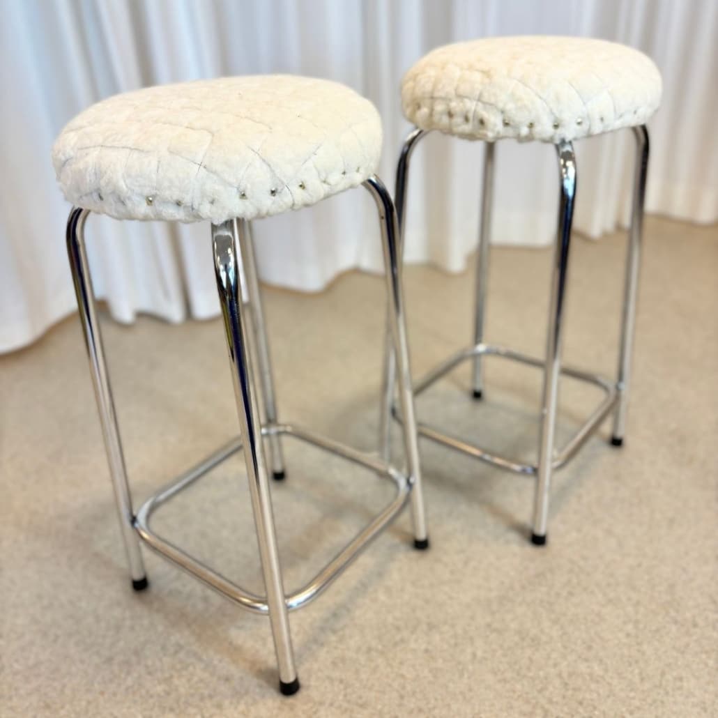 Set van 2 vintage chromen barkrukken met nieuwe bekleding