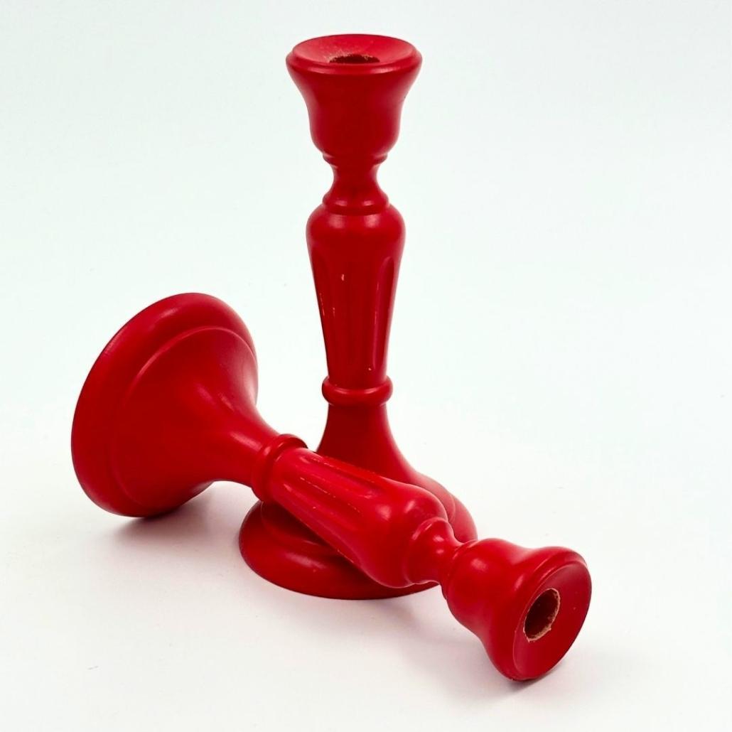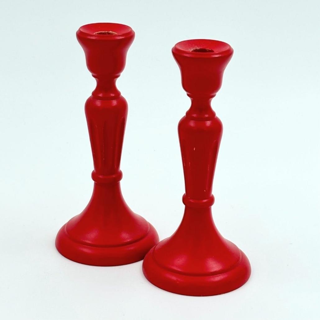 Set van 2 originele houten Zweedse kandelaars. Mooi houtsnijwerk in een klassiek design. De dieprode kleur geven de typische Scandinavische kerstsfeer.
