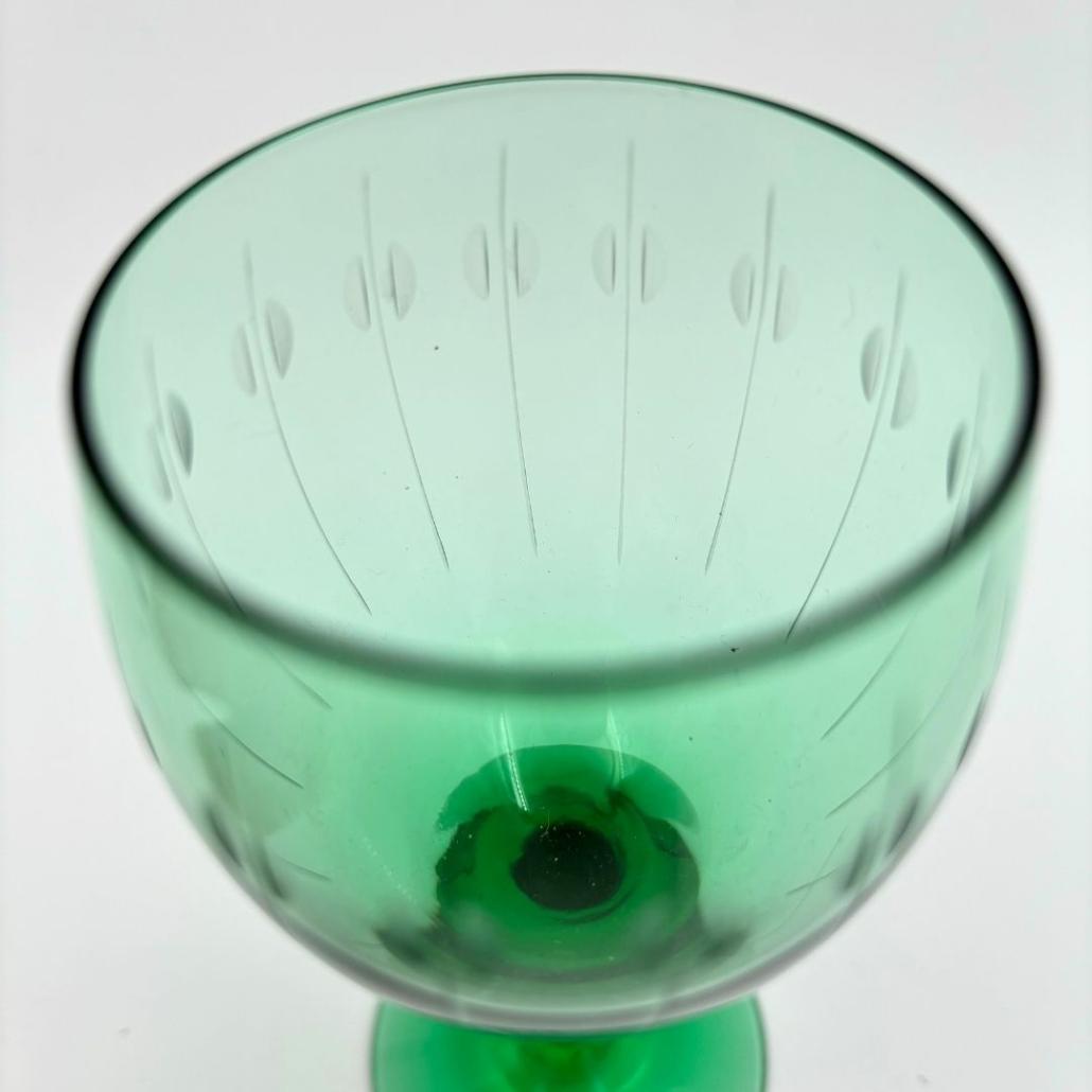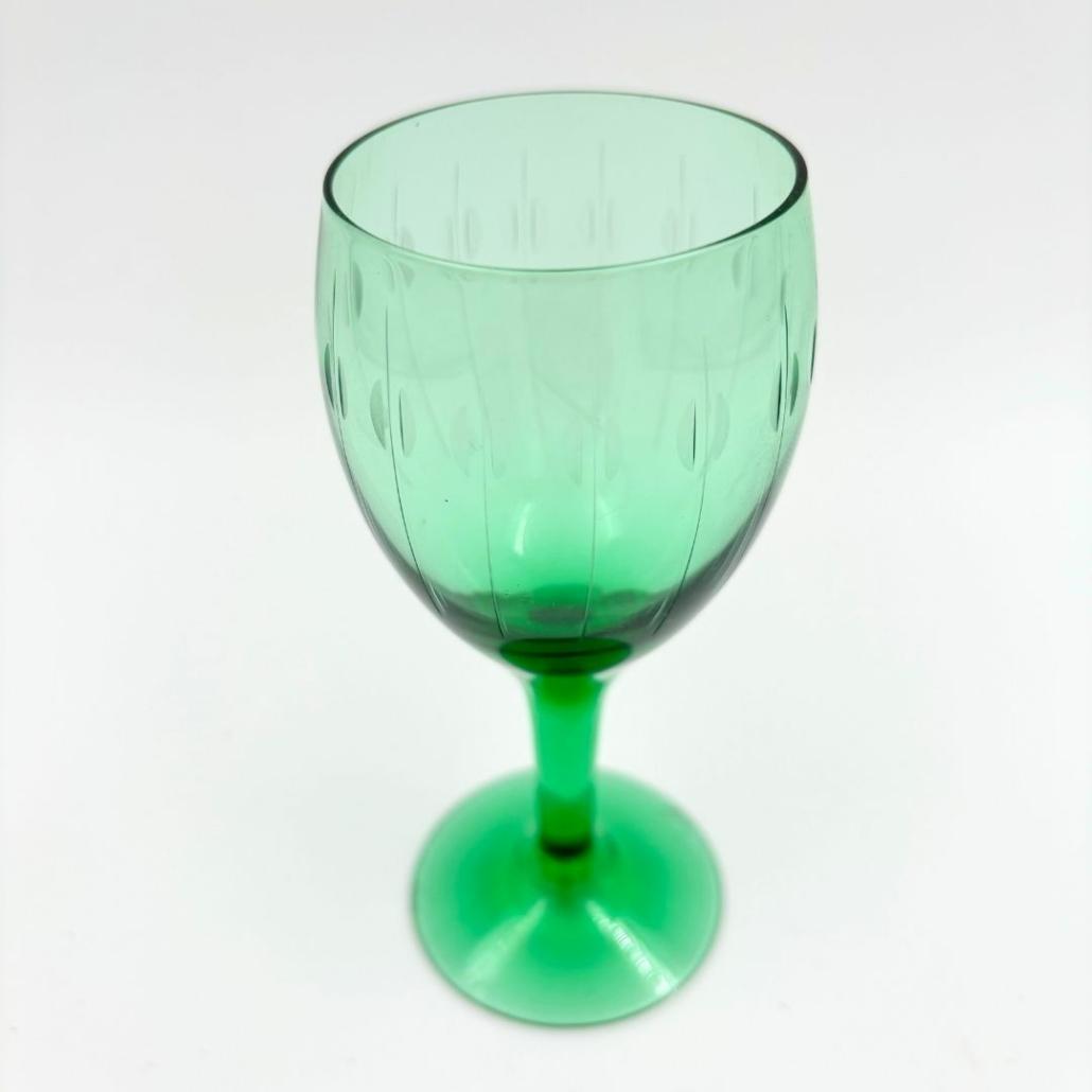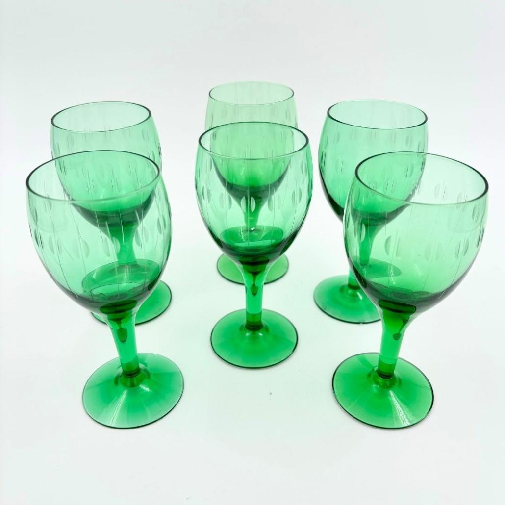 Set van 6 likeurglazen geslepen groen glas
