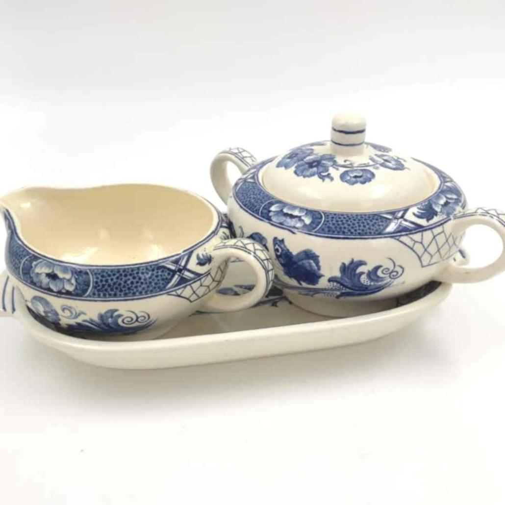 Prachtig roomstel met onderschaaltje van het Butterflij (Butterfly) servies van Société Céramique Maestricht. Fijne florale decoratie met natuurlijk een vlinder. In goede gebruikte conditie.