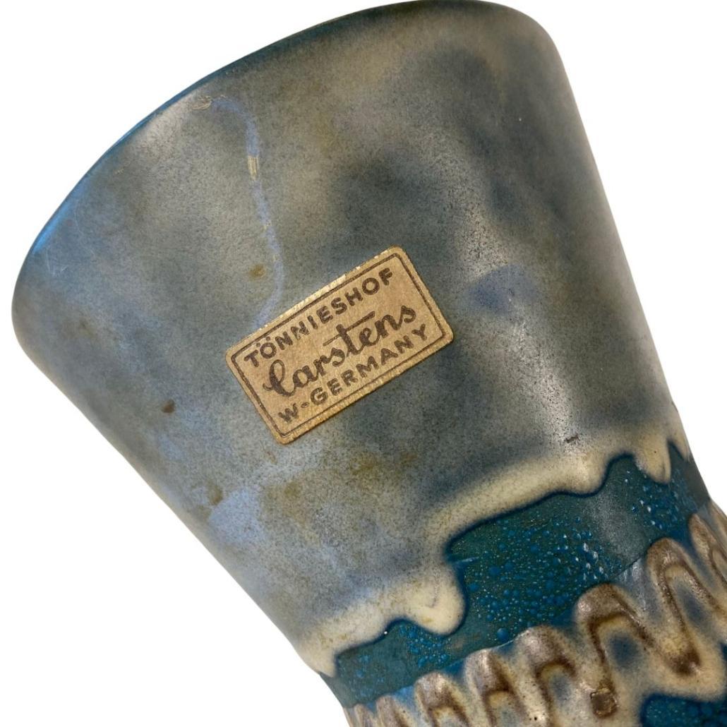 Dit is echt een prachtige West-Germany vaas in smaragd met crème-koper achtig glazuur. Gemaakt door Carstens Tonniëshof, een keramiek fabriek die actief was tussen 1947 en 1977 in Fredelsloh (Niedersachsen). In mooie vintage conditie. Gemerkt 1256-22 met originele sticker.