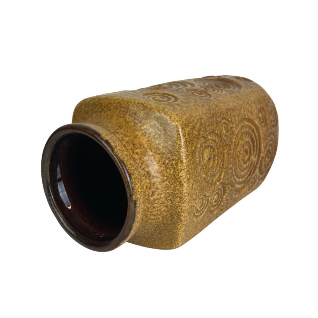 West-Germany vaas van het merk Scheurich.  De vaas heeft het klassieke Jura motief in reliëf. Mat lichtbruin van buiten en glanzend donkerbruin glazuur binnenin. In prachtige vintage conditie. Gemerkt 282-20.