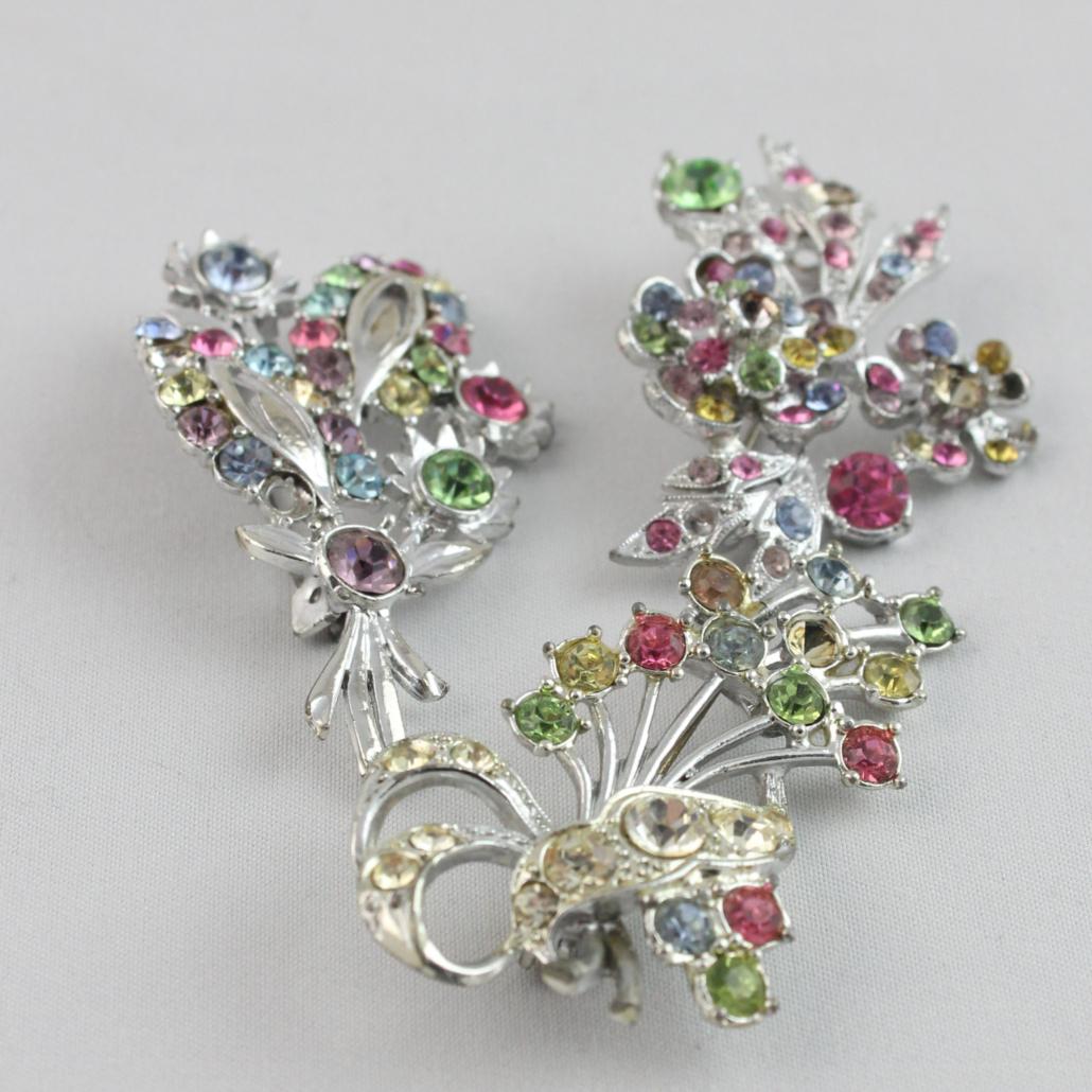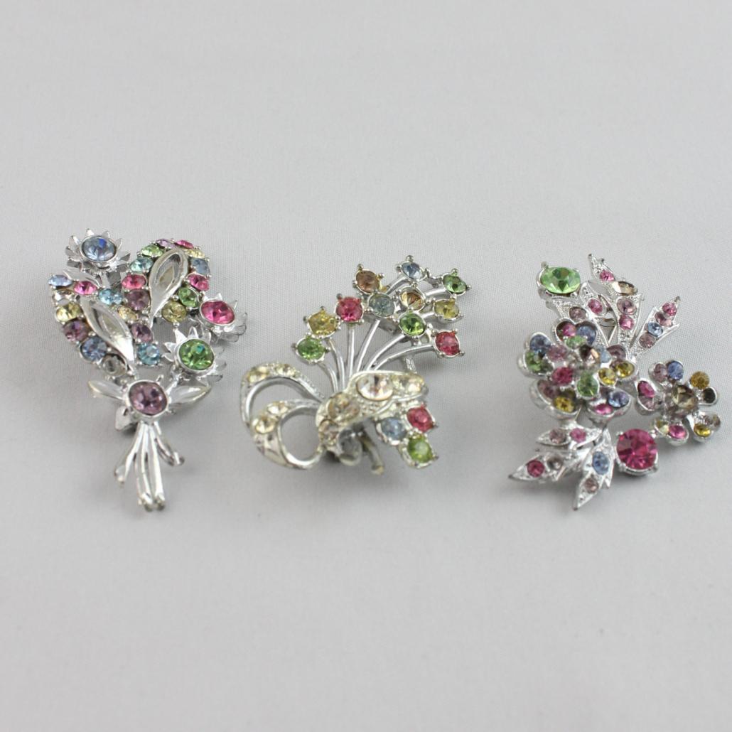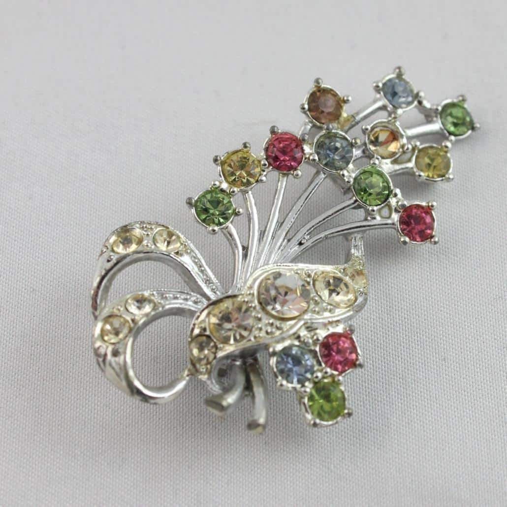 Een sierlijk bosje bloemen op je borst. Met deze vintage broche schitter je. Ongeveer 6 cm.