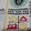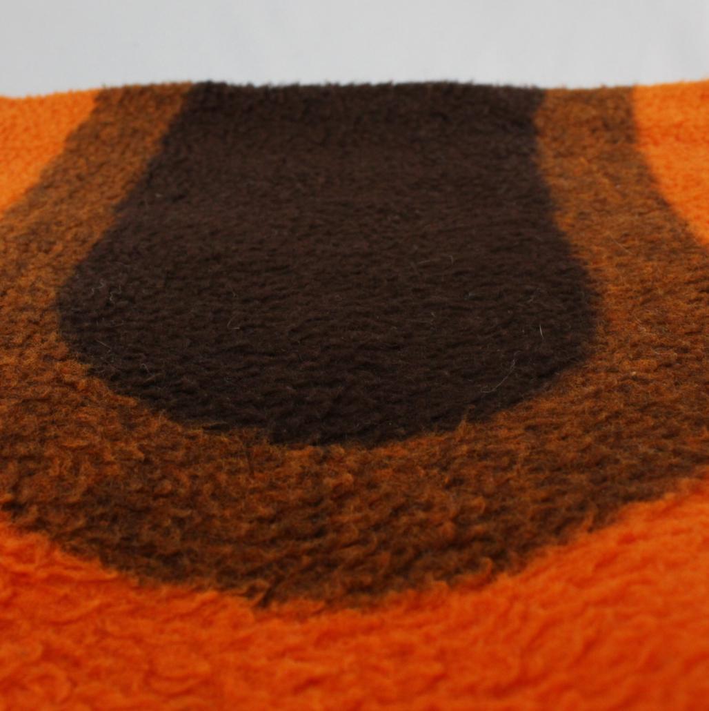Originele jaren ’70 deken in oranje, bruin en groen. Goedgekeurd door de Nederlandse Vereniging van Huisvrouwen. Niet van wol.
