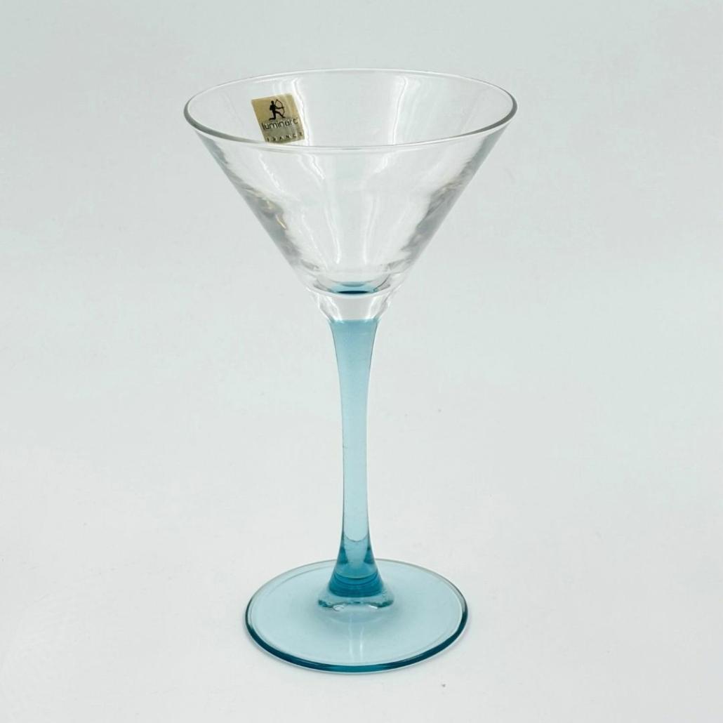 Vintage Luminarc cocktailglazen met lichtblauwe voet