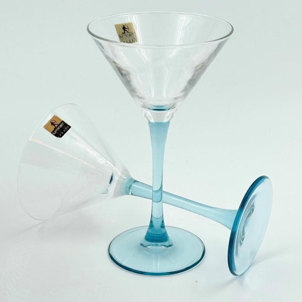 vintage luminarc cocktailglazen met lichtblauwe voet