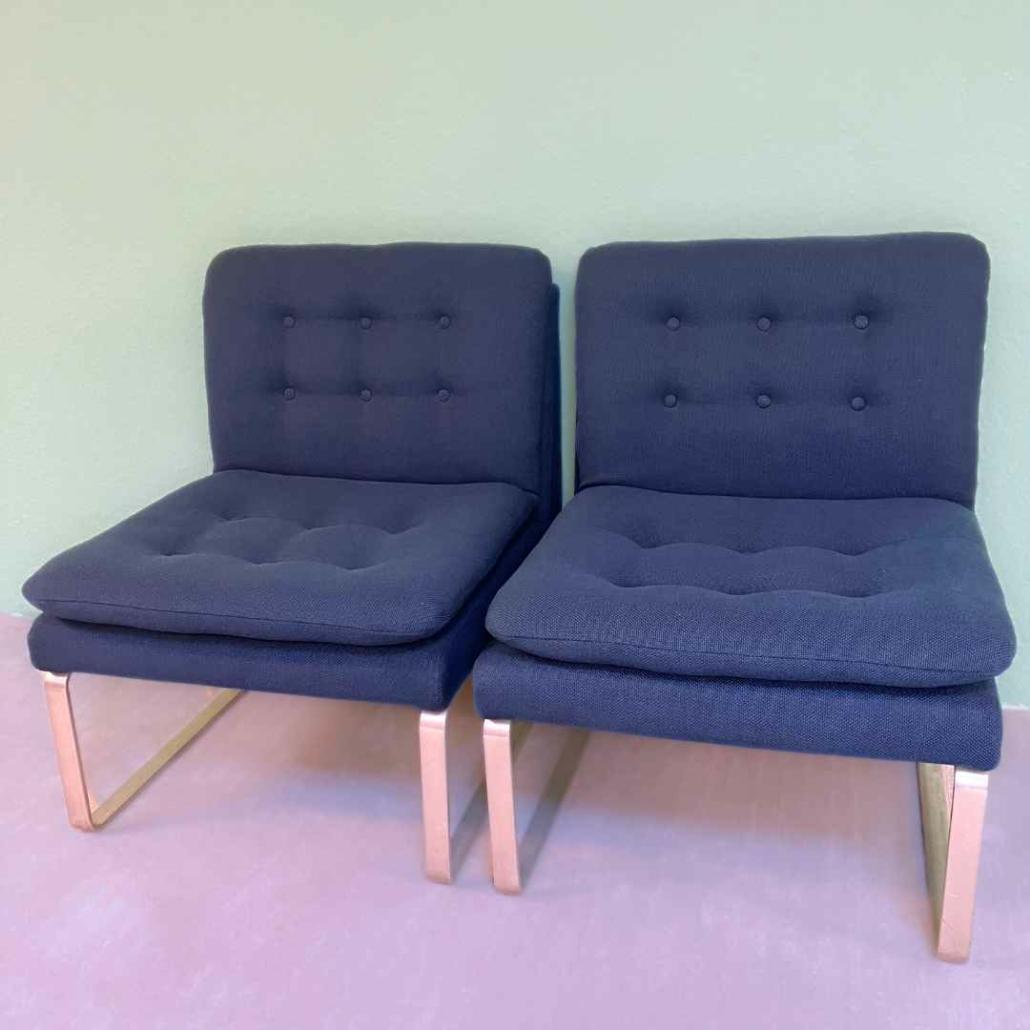 Deze space age vintage fauteuils zijn geweldig. Ze hebben een prachtige donkerblauwe kleur en de bekleding is in topconditie.  Ze zijn van het Duitse merk Fröscher en gemaakt in de jaren ’70. Ze zitten heerlijk.
