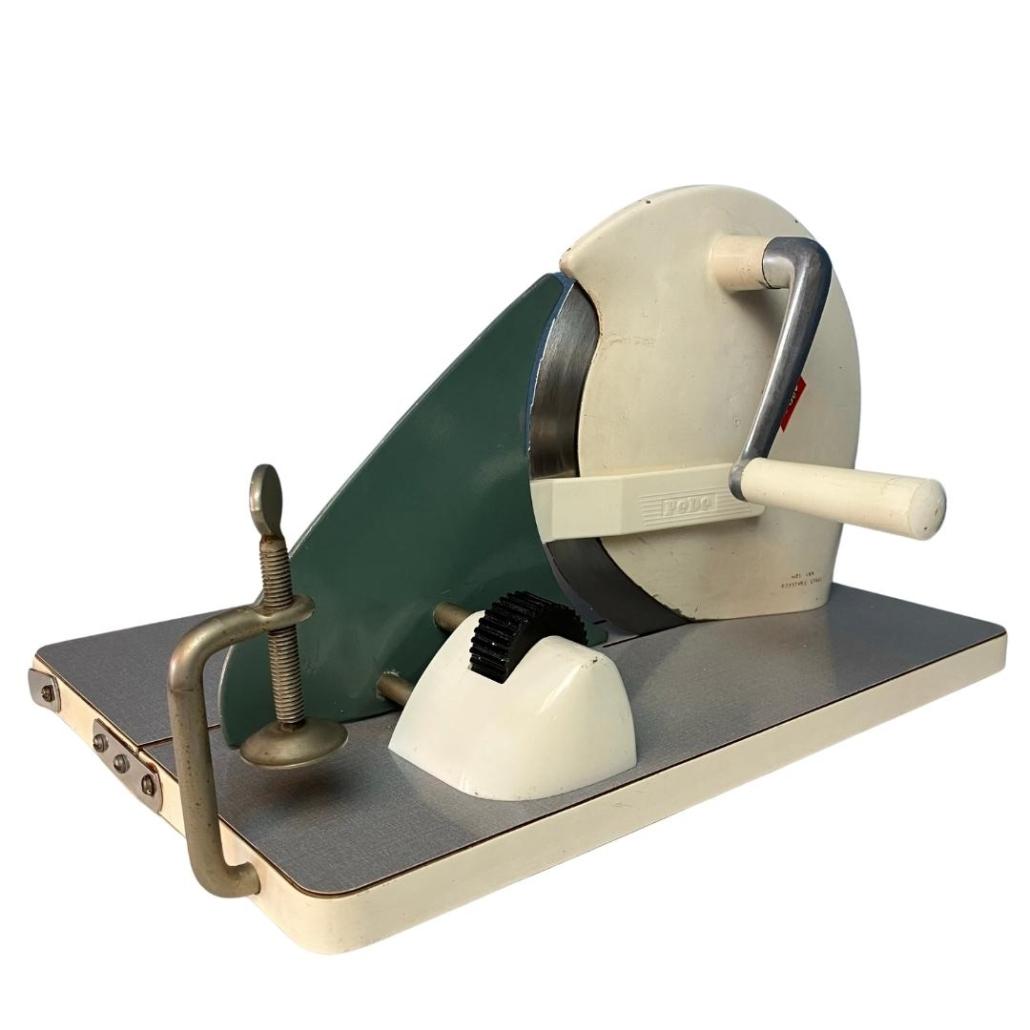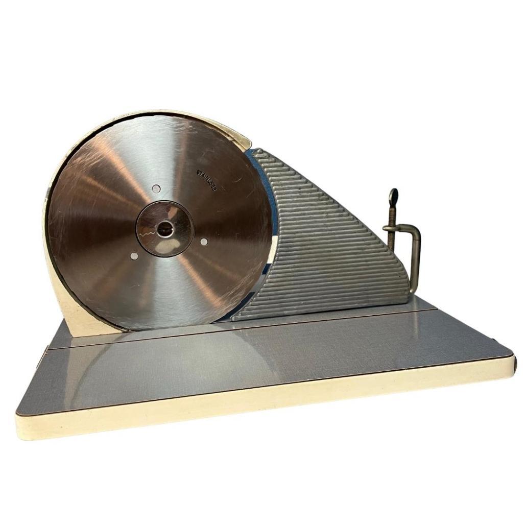 Prachtige vintage vleessnijmachine met originele merksticker van Pedé. Functioneert prima. In mooie vintage conditie met gebruikssporen.
