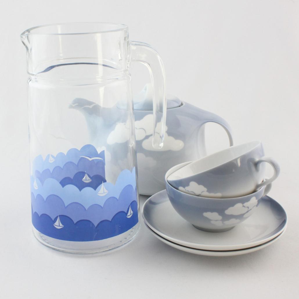 Waterkan met zeilbootjes