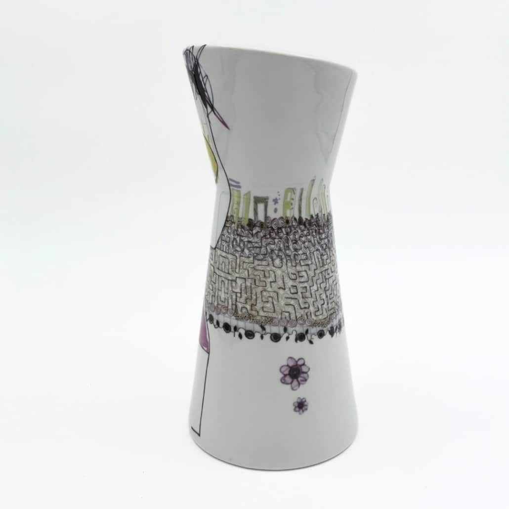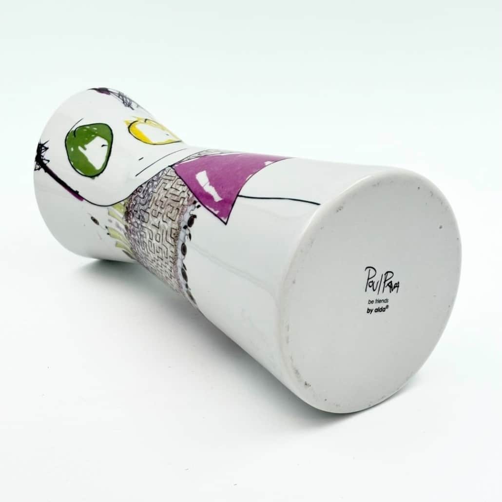 Deze vrolijke karaf of vaas is ontworpen door de Deense kunstenaar Poul Pava, die beroemd is om zijn tekeningen en schilderijen in naïeve stijl. De schaal hoort tot de serie Be Friends die hij samen met illustrator Tamara Lara Furrer maakte en waarin dertien verschillende vrolijke figuren een hoofdrol spelen.